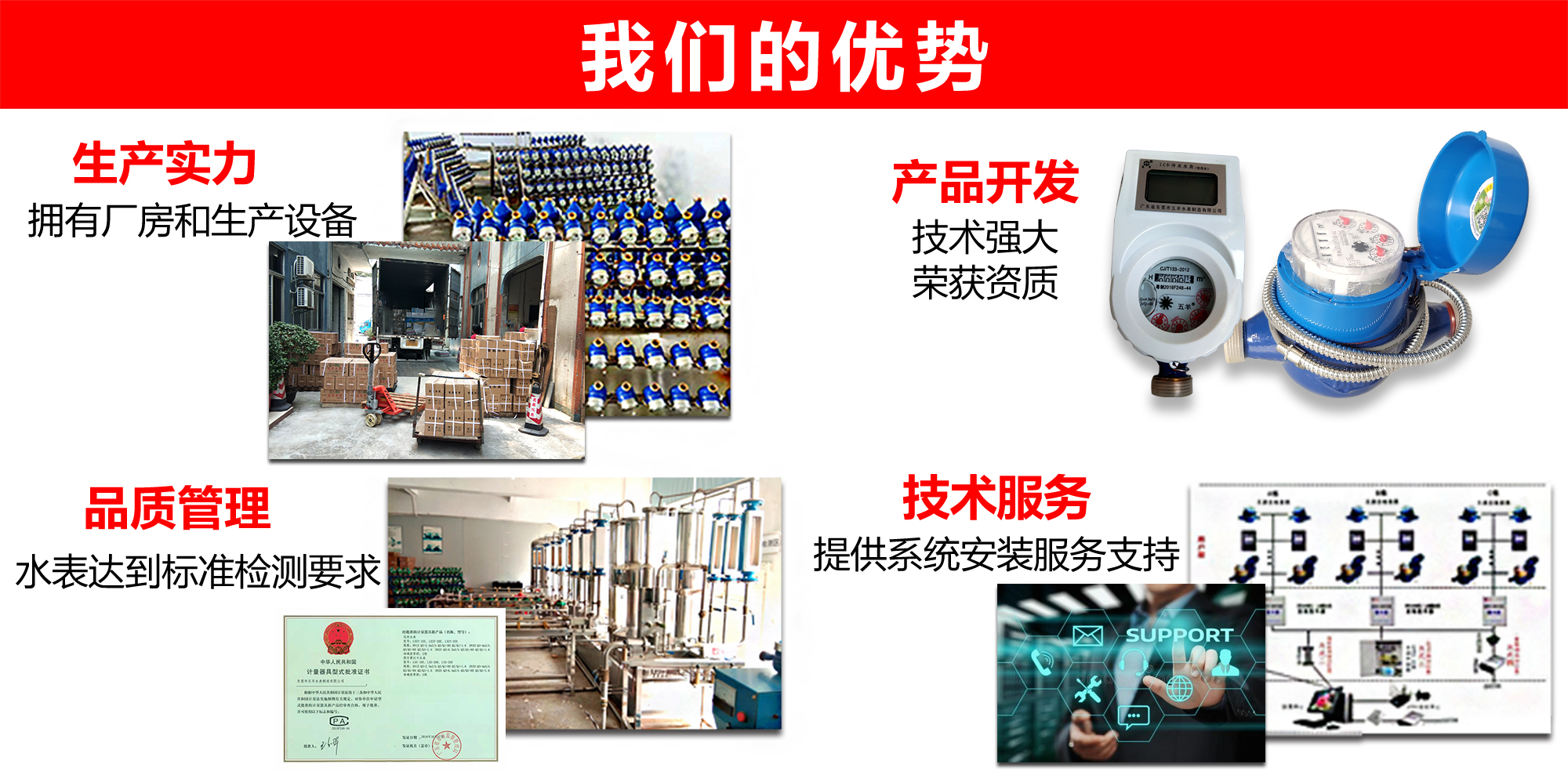 2016認(rèn)證,擁有多項(xiàng)自主品牌的知識(shí)產(chǎn)權(quán),對(duì)智能卡表和光電直讀遠(yuǎn)傳表提供多種技術(shù)解決方案。